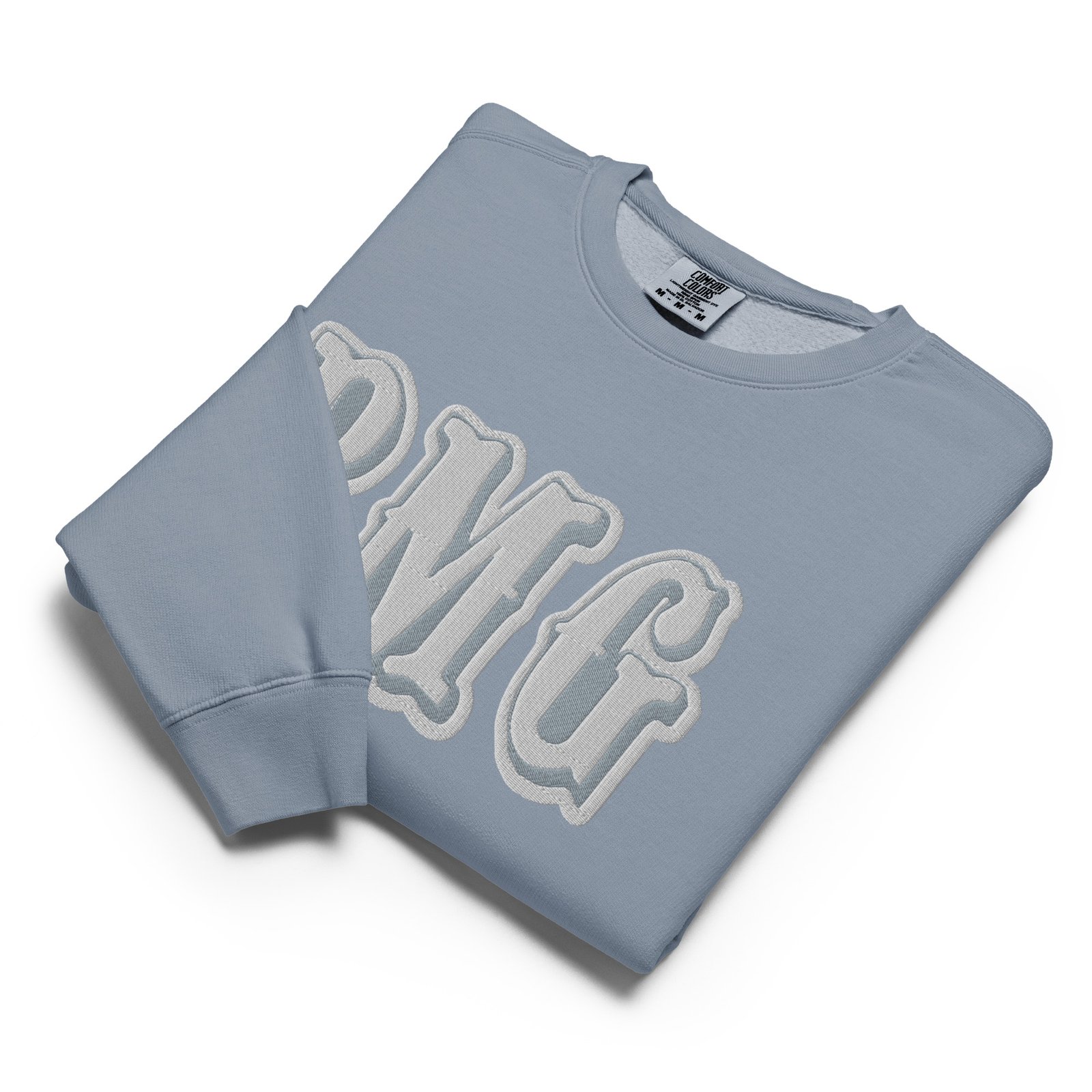 Teal and White Embroidered Unisex garment-dyed fleece crewneck sweatshirt